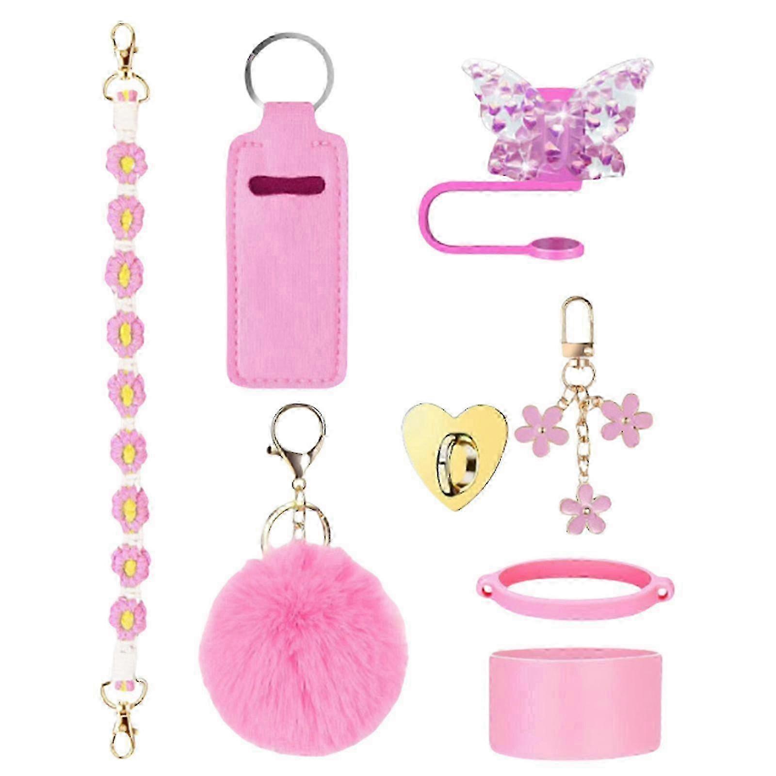 8Pcs Home Party Cup Enhancement Set Attractive Cup Decoration Set with Floral Embellishment, Straw Guard & Chain