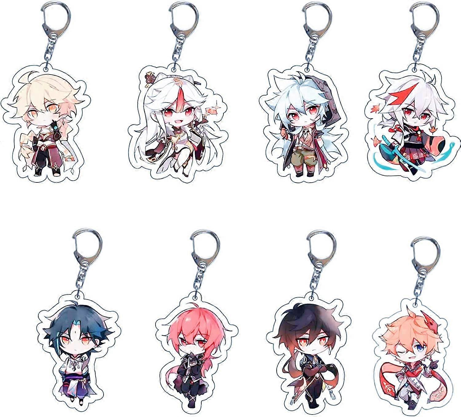 8Pcs Genshin Impact Cute Game Acrylic Keychain Japanese Anime Cartoon Key Charm Rings Genshin Impact 1 -