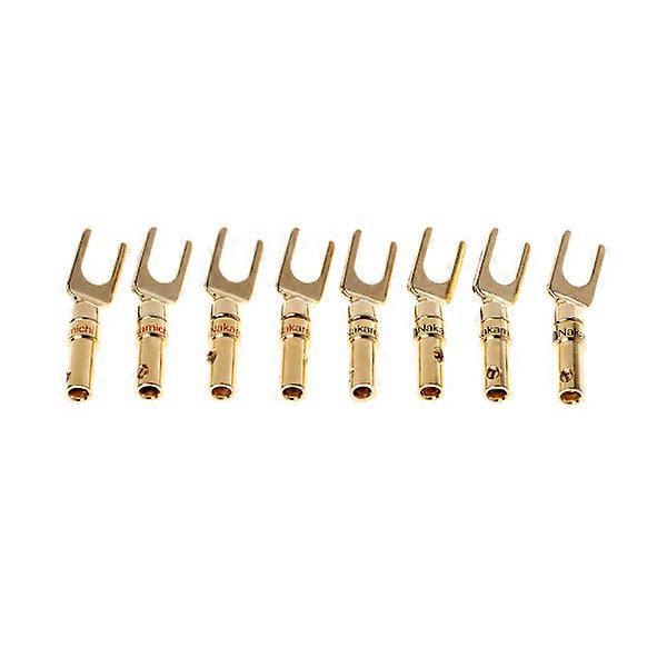 8 pcs Brass Gold Plated Y Spade Speaker Plugs o Screw Fork Connector Adapter
