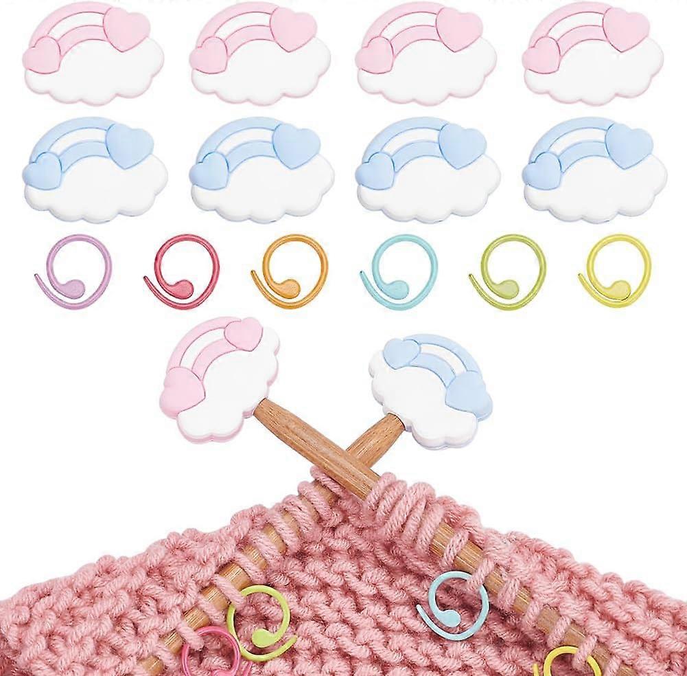 8 Pcs Knitting Needle Stoppers 30 Pcs Knitting Stitch Marker Rings Cloud & Rainbow Point Protectors Stoppers Silicone Stitch Stoppers Knitting Supplie