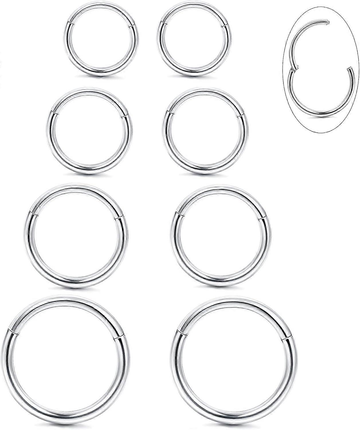 8Pcs G23 Titanium Hinged Clicker Segment Nose Rings Hoop Septum Nose Lip Ring