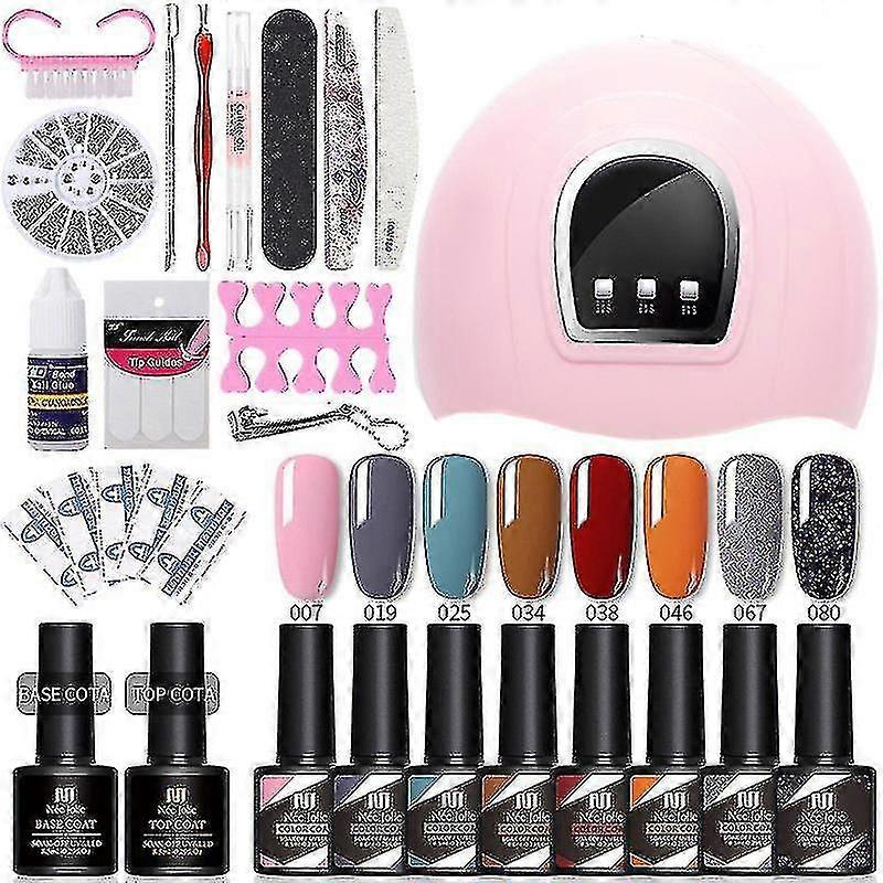 8 Colors Gel Nail Polish Starter Kit With Uv/led Light, Nail Dryerbase Top Coat, All-in-one Nail Art Tools, Salon/home Diy Manicure Kit, Gift For Her