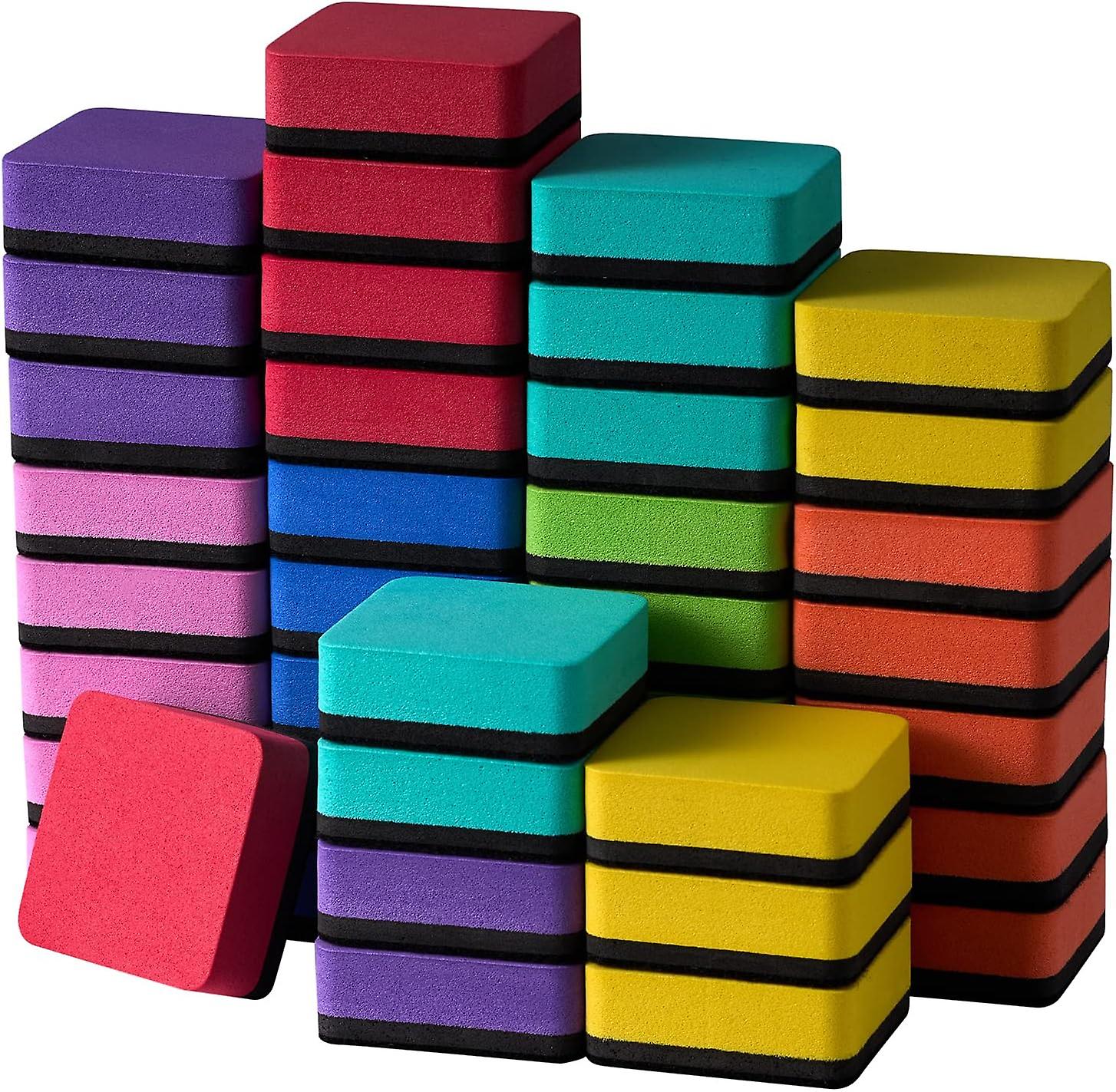 8 Color Dry Erase Erasers, 40 Pack Magnetic Whiteboard Dry Erasers Chalkboard Cleaner Wiper for Kids and Classroom Teacher Supplies Home and Office