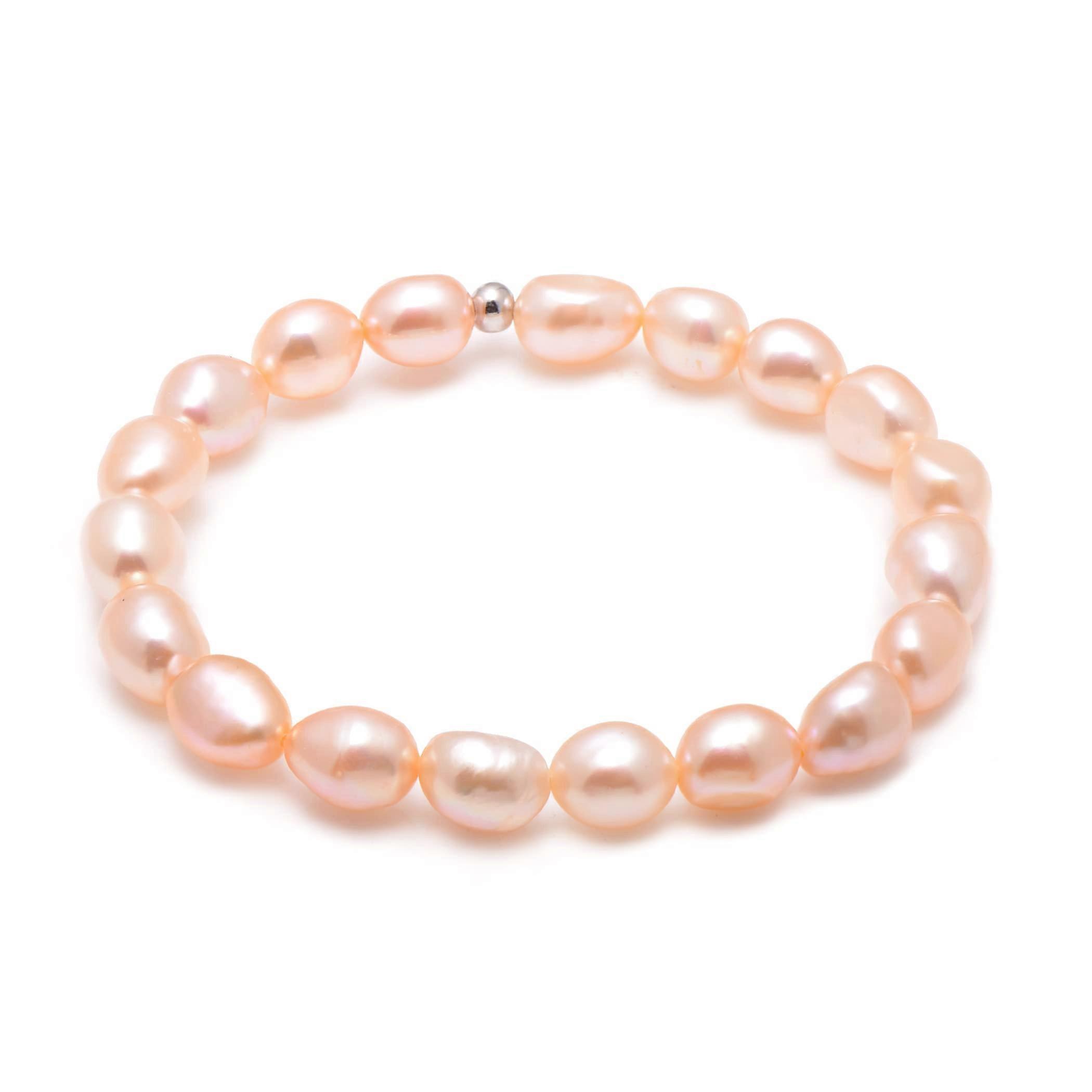 8-9mm Cultured Freshwater Baroque Pearl Stretch Bracelet, 7 Inch, Natural Pink Color