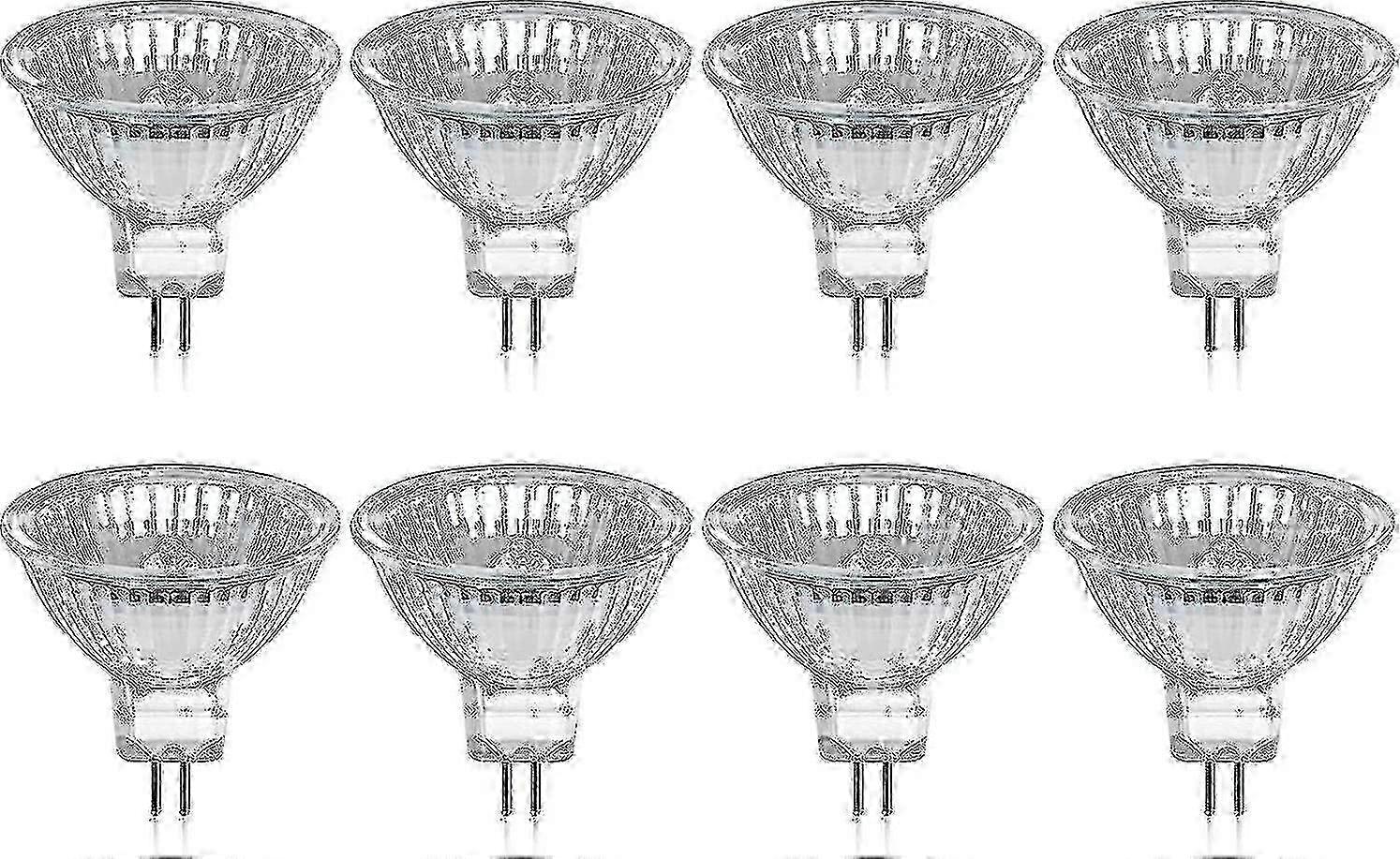 Set Of 8 Gu5.3 Mr16 20w 12v Warm White Halogen Bulb, Glass Cover 400lumen 2 Pin Spotlight Replacement For 20w Halogen Walkbee 5230 B