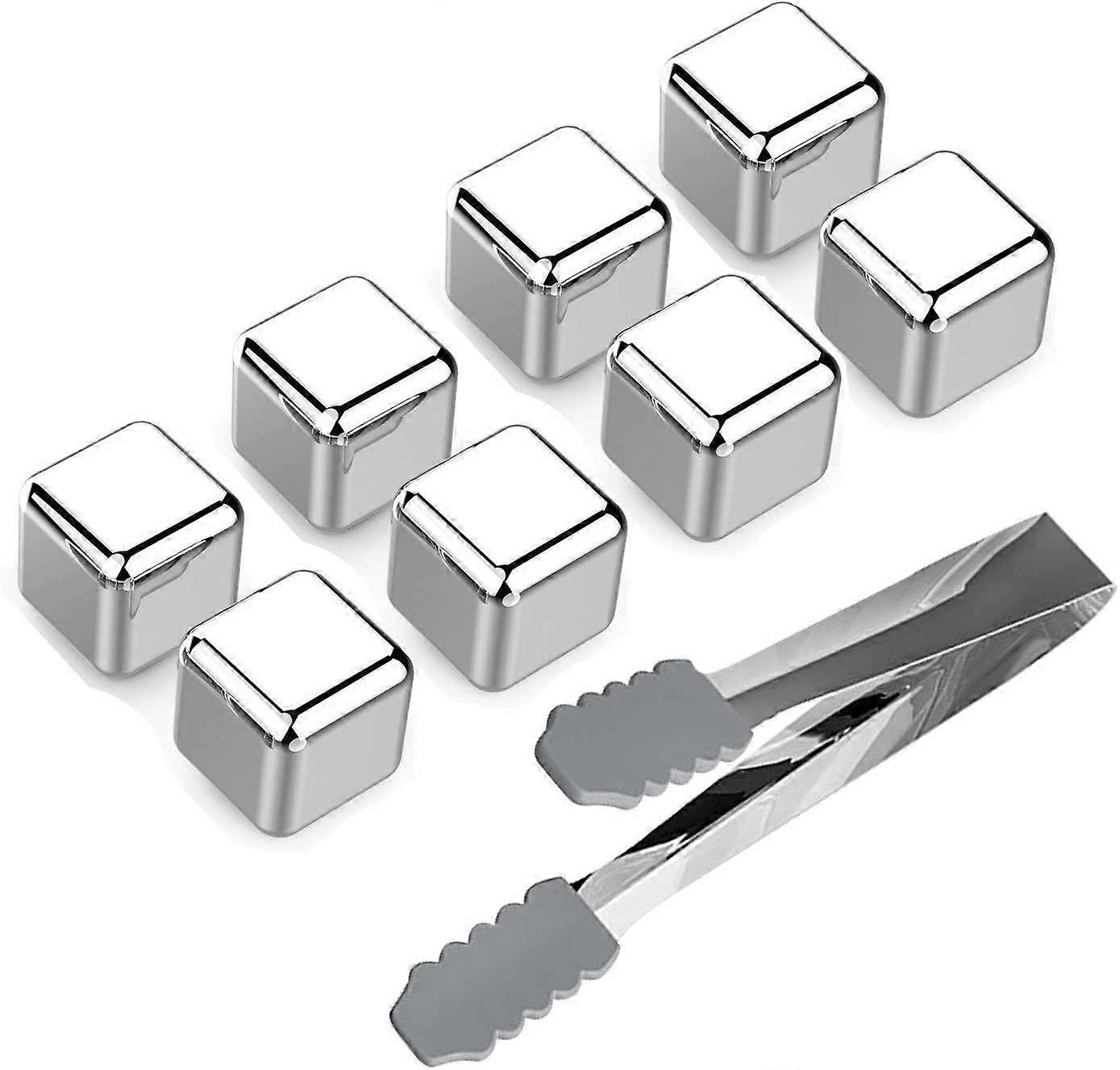 8 x Stainless Steel Whisky Stones Ice Cubes, Reusable Chilling Rocks Cooling for Scotch Whisky, Wine, Gin, Tonic Drinks (silver)(9pcs