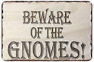 8 X 12 Novelty Funny Sign Beware of The Gnomes Vintage Metal Tin Sign Wall Sign Plaque Poster for Home Bathroom and Cafe Bar Pub, Wall Decor Car Vehic