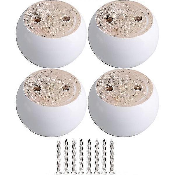 Set of 4 white eucalyptus wood round furniture legs 8 x 8 x 5 cm can support a weight of about 100 kg