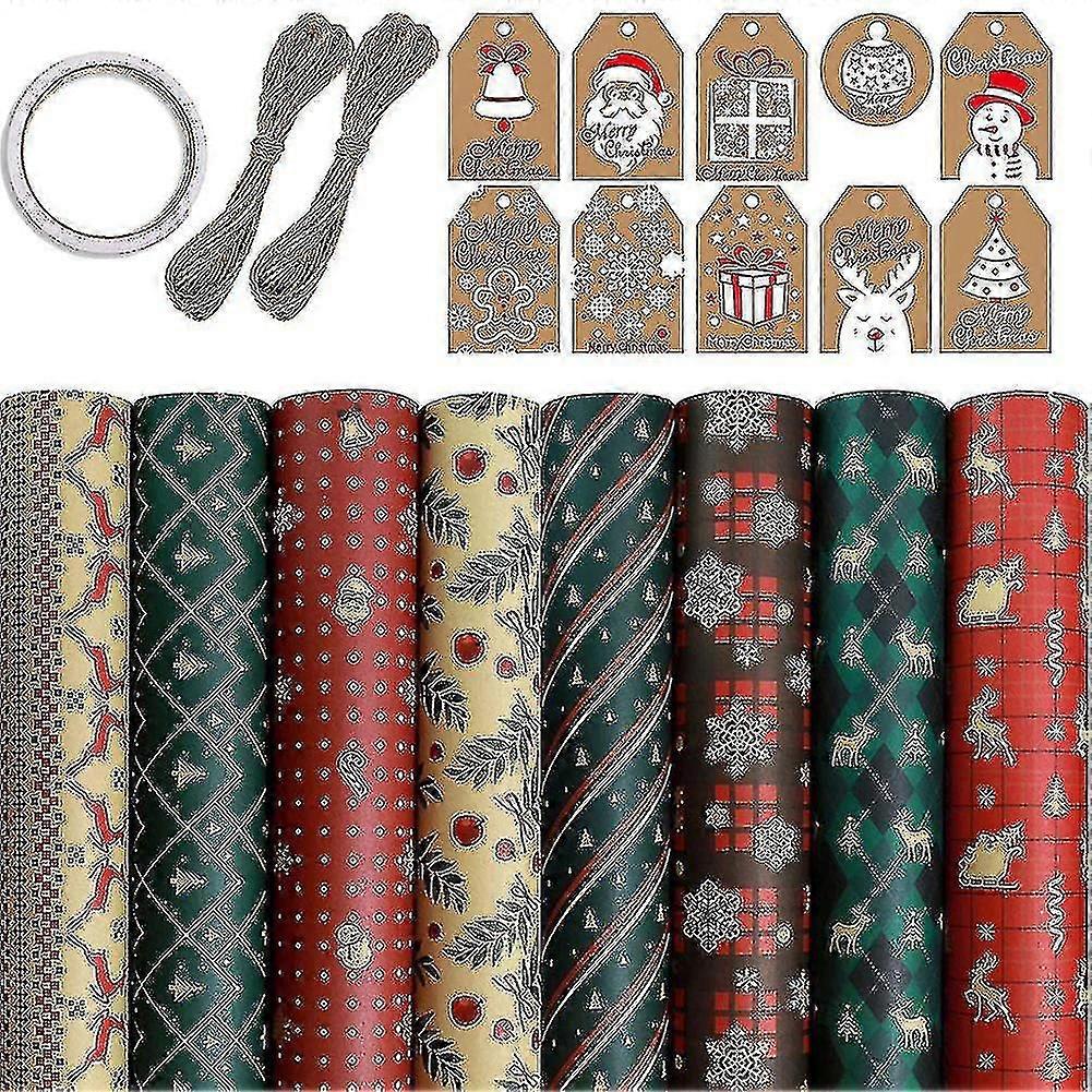 Christmas 8 Sheets Gift Wrapping Paper,compatible With Christmas Birthday Party Wrapping