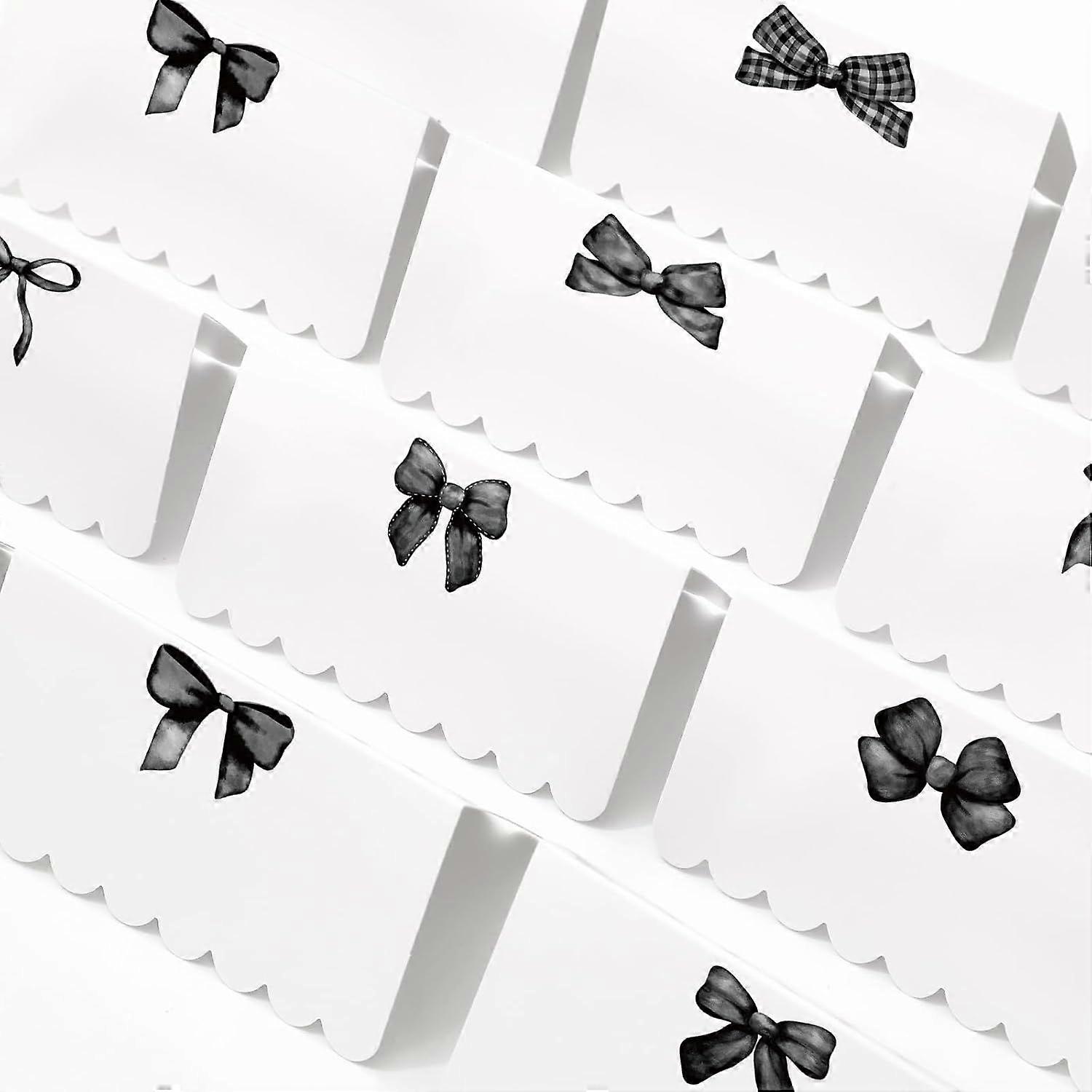 80 Pcs Black Bow Place Cards 2 x 3.5 Inch Watercolor Bowknot Tented Name Cards