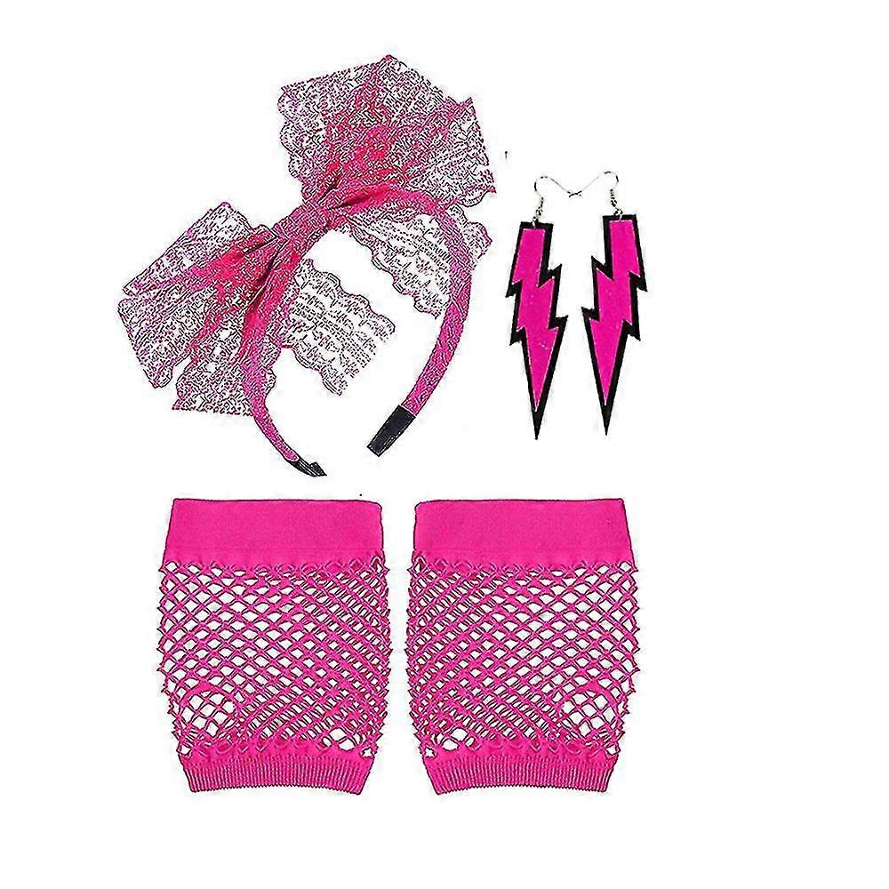80's Lace Headband Neon Earrings Fingerless Fishnet Gloves For 80's Party