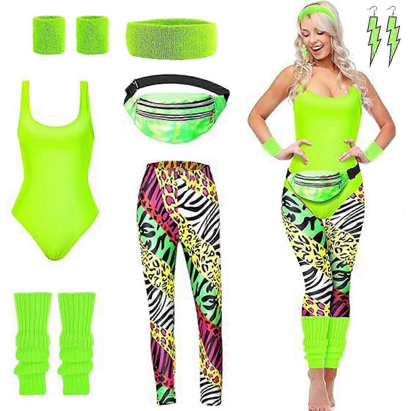 80s Outfit Costumes Accessories For Women Off The Shoulder Tops Shirts Neon Leggings With Leg Warmers