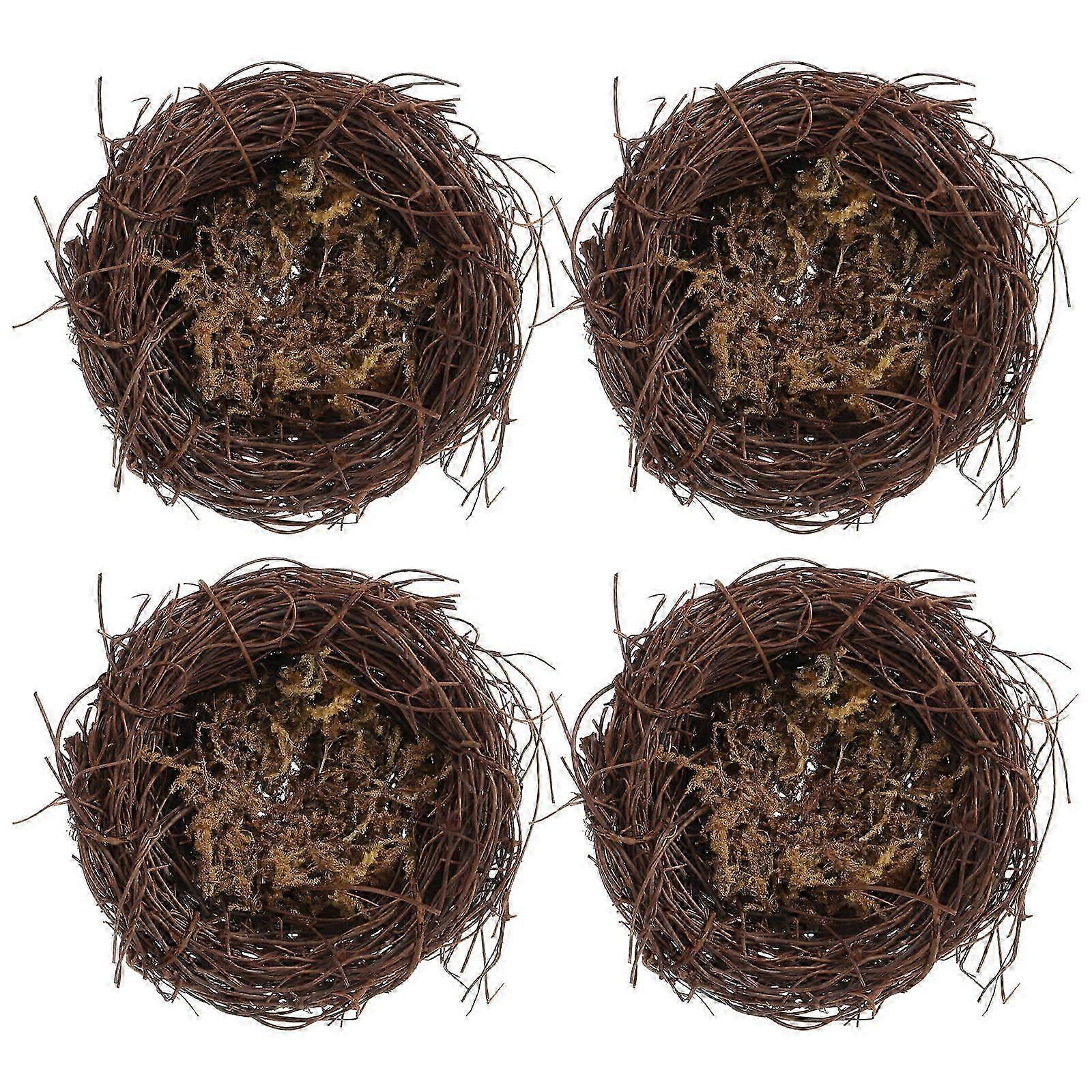 Faux Birds Nests Rattan Material Gardening Props Round Shape Table Decoration 8.00X8.00X3.00cm 4Pcs