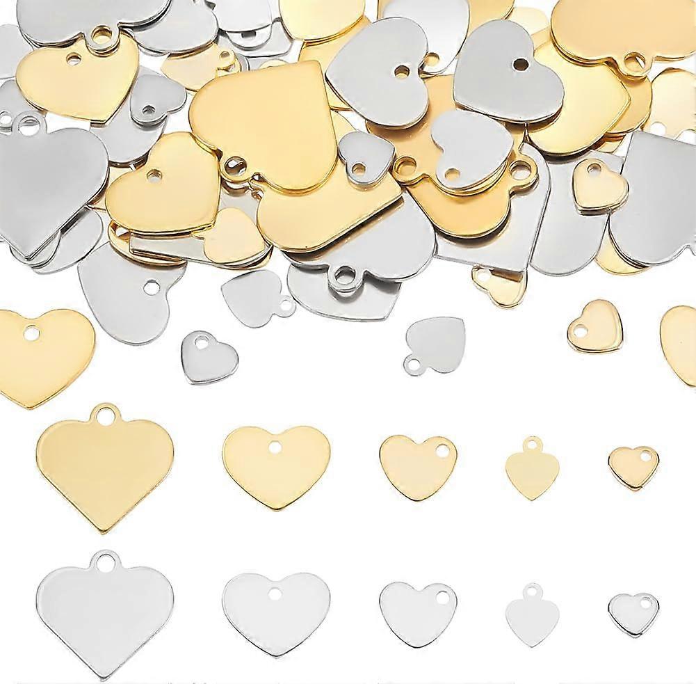 80pcs Blank Metal Hearts Charms 5 Styles Stainless Steel Blank Heart Pendants Flat Heart Stamping Blanks Tag Charms for DIY Jewelry Findings Making Ea