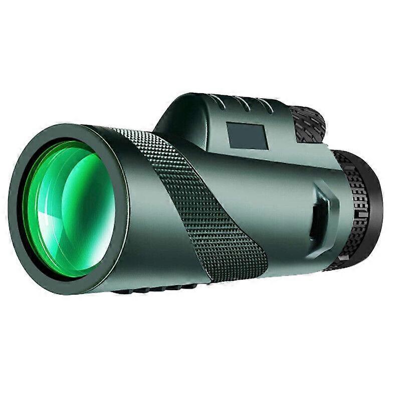 Features:80 X 100 HD HIGH POWER MONOCULAR TELESCOPE: With 80 times magnification and 100mm objective lens, this monocular is equipped with fully multi coated lenses to improve the light transmission rate and resolution.Ideal for outdoor enthusiasts and wilderness explorers, a handheld and must-have for bird watching, wildlife, hunting, hiking, mountaineering, camping, surveillance and traveling.WIDE SCOPE VIEW: 80X100 Monocular Telescope has the top line view and offers true 80 x 100 viewing.It is using FMC Superior BAK4 green film prism so that the monocular has compact, durable, high quality precision design Featuring.IDEAL FOR OUTDOOR: Monocular specially designed for outdoor enthusiasts. It is suitable for a variety of outdoor sports: hunting, observing animals, mountaineering, camping, travel, hiking, water sports, ball games, watching scenery, driving, concert, monitoring, outdoor exploration and other activities. Give you an amazing visual experience!HIGH CONTRAST AND RESOLUTION IMAGES: The zoom telescope is equipped with BAK-4 prism and fully multi-coated lens, guaranteeing superior light transmission and brightness. The light transmission reaches up to 99.5% visibility. The built-in low-light-level night vision helps you see things in low light. An adjustable eye cup also allows you to twist up and down easily and rapidly for optimal viewing even while wearing glasses.WIDE COMPATIBILITY: 1Non-limited for glasses-wearer.The design of this monocular allows the wearer to get close to the eyepiece without interfering with the viewing experience and feel more comfortable.2.Equipped with a mobile phone bracket, which is suitable for many types of smart phones on the market. 3.Both adults and children can use it. Specifications:Item Name: Monocular TelescopeEye Piece Lens Description: Prism Color: GreenFocus Type: Manual FocusPower Source: Adapter,HandheldFinderscope: Straight-ThroughPackage Dimensions: 17x6.5x9cm(6.6x2.5x3.5in)Package Weight: 400g Notes:Due to the light and screen setting difference, the item's color may be slightly different from the pictures.Please allow slight dimension difference due to different manual measurement. Package Included:1 x Monocular Telescope1 x Smart Phone Adapter1 x Carrying Bag1 x Tripod1 x Lens Cleaning Cloth