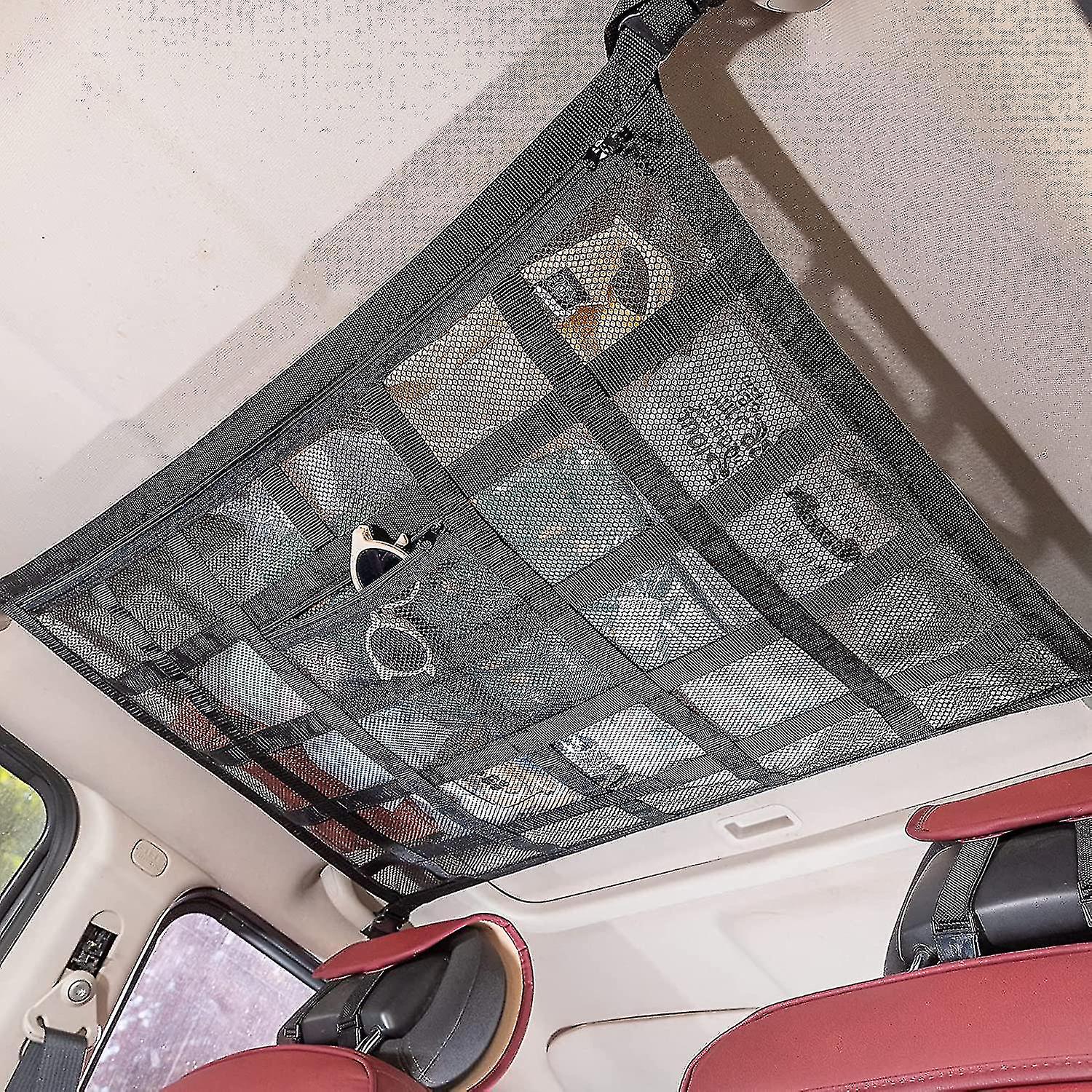 Upgrade Car Ceiling Cargo Mesh Bag, 80x55cm Reinforced Load Bearing And No Sagging Double Layer Mesh Car Roof Storage Rack, Truck Suv Travel Long Trav