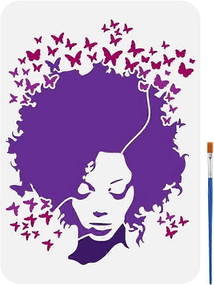Butterfly Woman Stencil for Painting 8.3x11.7 inch Reusable Woman Hair Painting Stencil with Brush