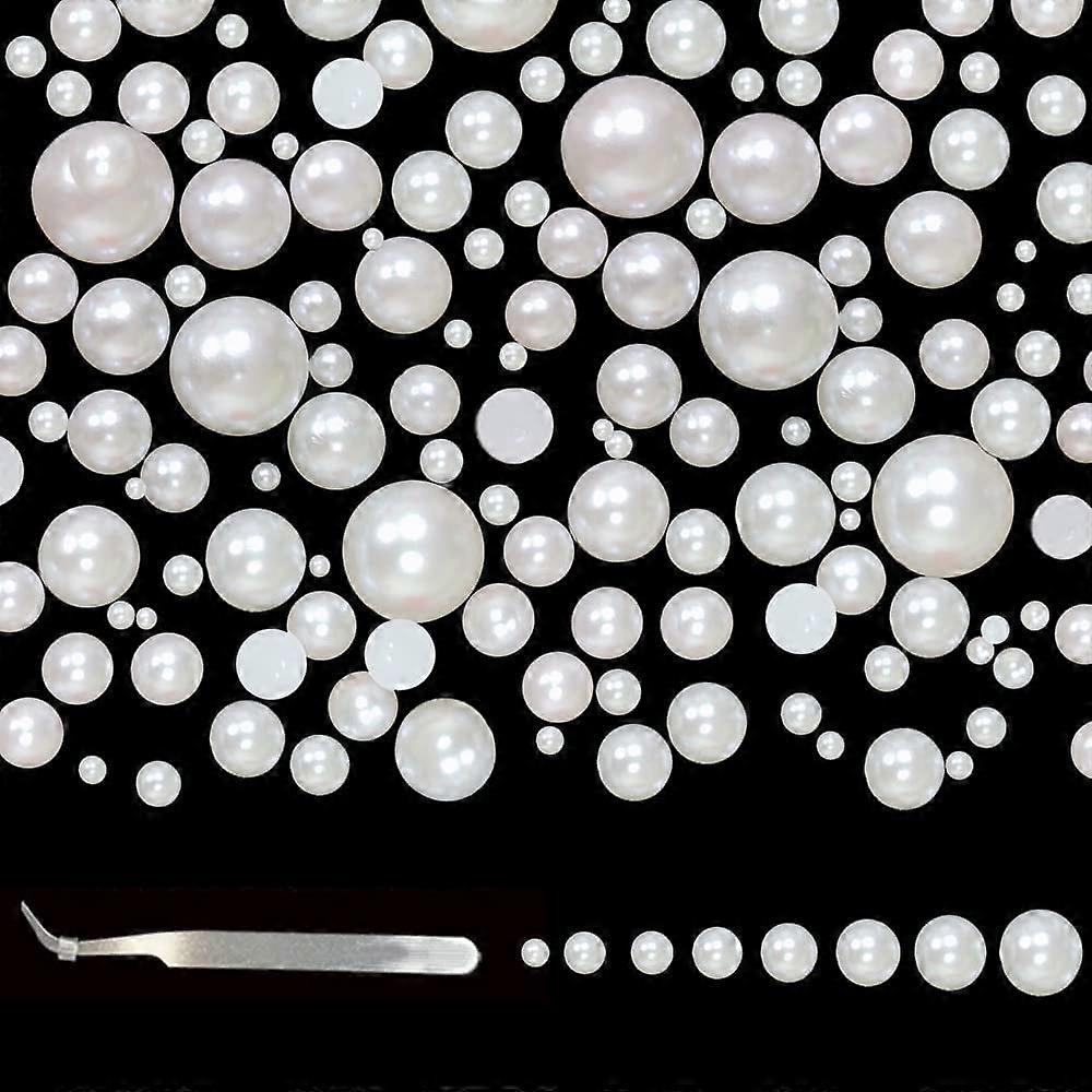 8400pcs Assorted 8 Sizes Half Pearl Bead Flatback Plastic Craft with Tweezers for Shoes Phone Nail Art Making (Off White)