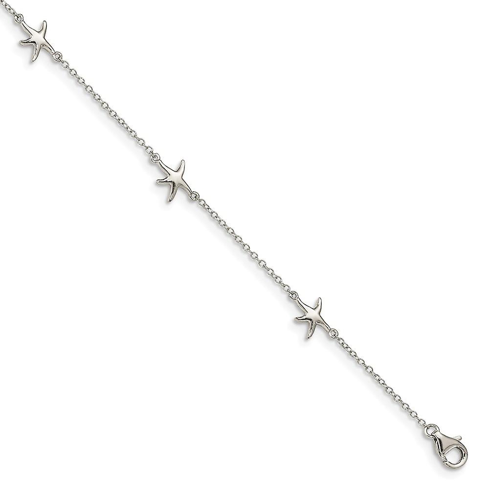 8.4mm 925 Sterling Silver Rhodium Plated Sea shell Nautical Starfish Plus 2in Extension Anklet-Anklet for Women - Length