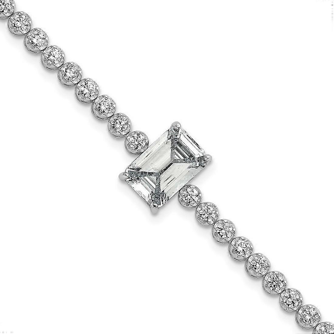 8.4mm 925 Sterling Silver Rhodium Plated Polished Round and Rectangle CZ Bracelet 7.25 Inch Link-Bracelet for Women