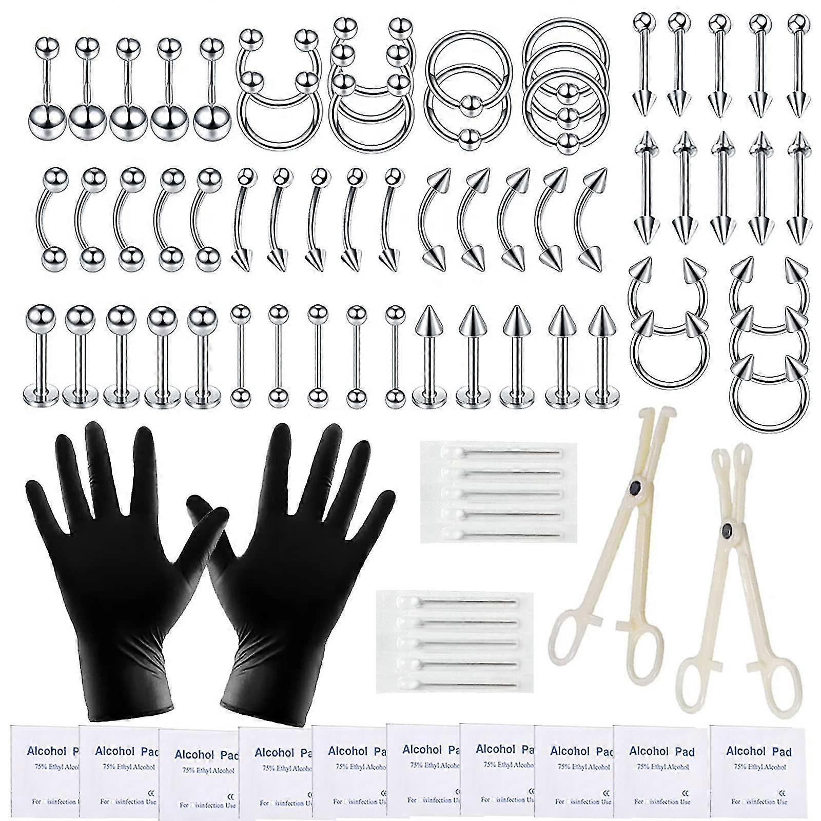 84pcs Body Septum Piercing Kit 14g 16g Tools For Nose Tongue Nipple Lip Ear Eyebrow Belly Button