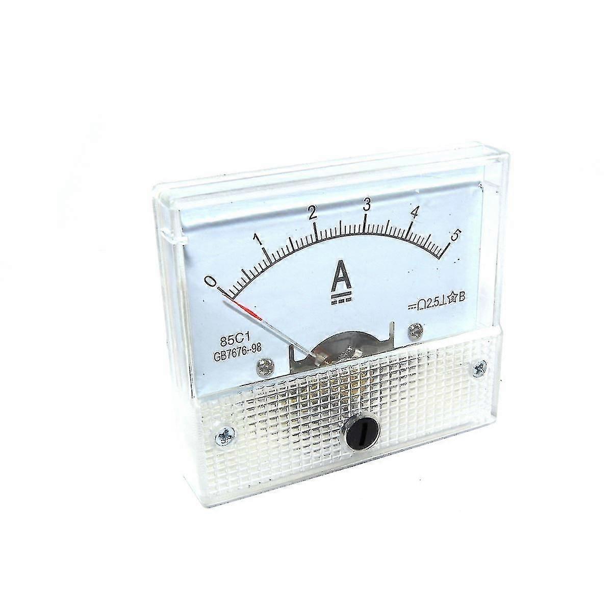 Length (mm): 66Width (mm): 64 Height (mm): 61 No color: WhiteCountry of production: ChinaMPN: 85C1-5AMinimum Operating temperature: -10 CMaximum Operating temperature: 55 C Number of items: 1 Details List : 1 85C1-5A Analog Ammeter 65x56mm White1 Patches Set Charging Hole Size: M3Mounting Dimensions: 52mmType: Analog Color: WhiteNoted for Programming / Interfaces: Screw Calibration Characteristics: Current Current Detection Minimum: 0A DCCurrent Maximum Detection: 5A DCResponse Type: 4s Class 2.5 Panel Hole Size: 54mm Thickness: 11mm Thickness Maximum: 8mm The unit features a built-in ammeter reading to allow you to monitor current levels between 0A and 5A DC. The counter is designed to be mounted on a board and requires a hole of 54 mm to do so. The connections are made using two screw terminals found at the rea