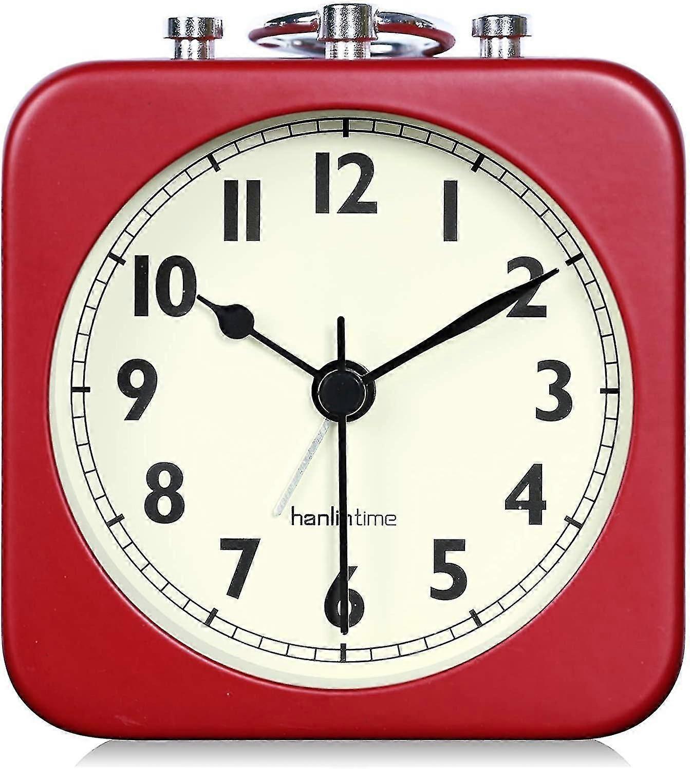 8.5cm Alarm Clock Analog Red Square Silent Small Metal Travel Alarm Clocks
