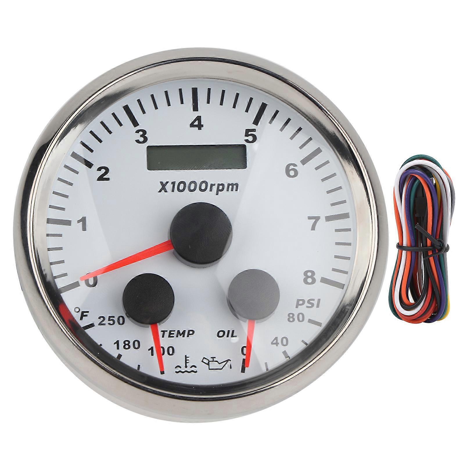85mm Oil Pressure/Temp Gauge 3in1 Multifunctional 8000RPM for 816V Ships Motorhomes Yachts Motorcycles E2U411