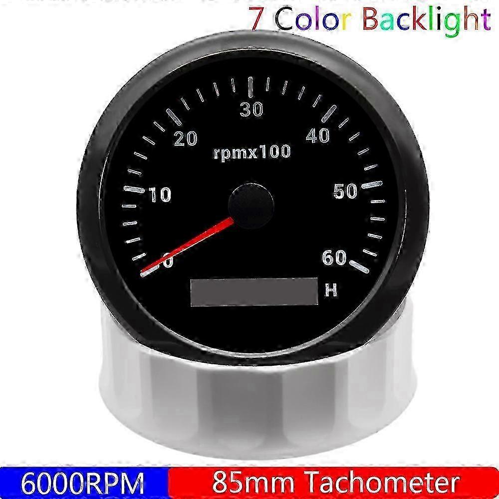 85mm Engine Tachometer 3000/4000/6000/8000 Rpm Gauge Rev Counter With Digital Hourmeter 7 Backlight 12v 24v 6000RPM BN 2025