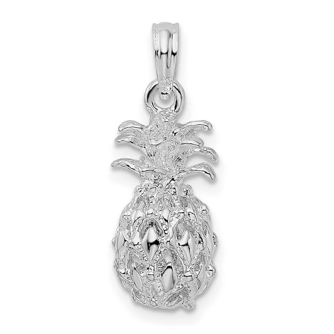 8.5mm 925 Sterling Silver Rhodium Plated Polish 3d Cut out Sm Pineapple Pendant Necklace-Pendant for Women