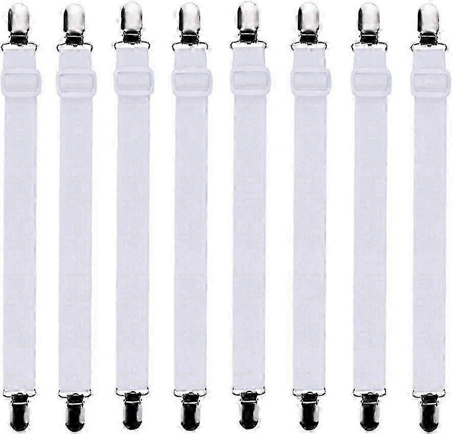 8 Pieces (60cm To 200cm) Adjustable Fitted Sheet Bed Sheet Carrier, Holder Holder, Suitable For All Beds And Mattresses, White
