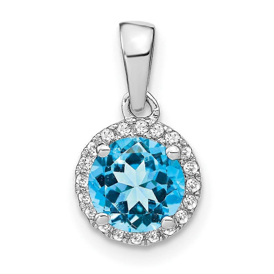8.7mm 14k White Gold Blue Topaz and Diamond Halo Pendant Necklace-Pendant for Women