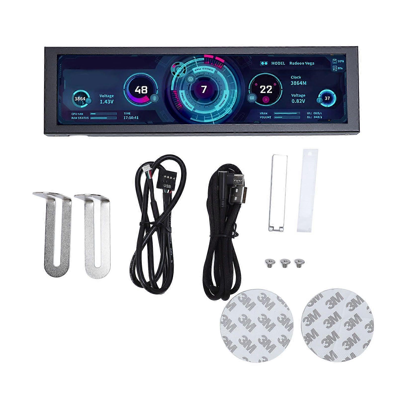 Feature:1. [8.8 Inch Screen] Support horizontal and vertical screen switching, 360 degree rotation, stepless brightness adjustment, automatic shutdown when the computer is turned off.2. [Convenient Installation] This 8.8 inch display features Type C and PH interface, convenient for installation, meeting various mounting needs, convenient and practical.3. [Aluminum Alloy Shell] The 8.8 inch display adopts aluminum alloy shell, sturdy and robust, guarding the screen from damage, ensuring lasting usage.4. [Auto Play Function] Automatically plays videos or photos from storage card (without) or internal storage when powered on, no need to connect to a computer.5. [Built in Decoding Chip] The secondary screen minimally consumes computer performance, ensuring smoothly computer running and providing a better user experience.Specification:Item Type: 8.8 Inch ScreenShell Material: Aluminum AlloyScreen Size: 8.8 InchResolution: 1920x480Viewing Angle: Full ViewInterfaces: Type C, Small Memory Card Slot, PH InterfaceMaximum Power Consumption: 1.6WSmall Memory Card: Supports up to 256G (Not Included).Package List:1 x 8.8 Inch Screen (Without Small Memory Card)1 x USB Cable1 x 9PIN Cable2 x Fan Bracket1 x Back Sticker Bracket1 x Back Sticker Bracket Adhesive Strip2 x Double Sided Tape3 x Screws1 x Instruction ManualNote:Please note that the structure of the back sticker bracket varies from batch to batch.