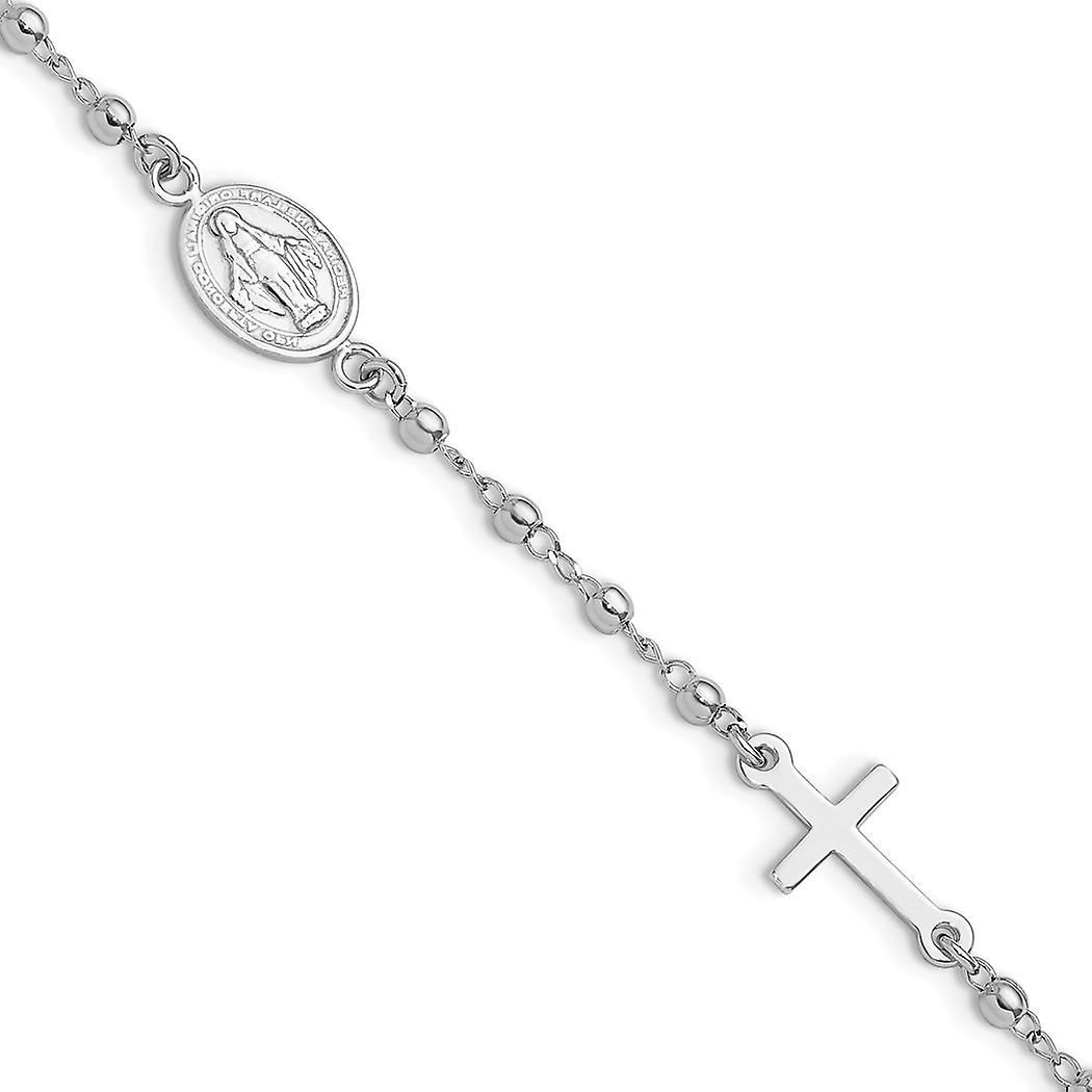 8.8mm 925 Sterling Silver Rhodium Plated With 1in Extension Rosary Bracelet 6.5 Inch Link-Bracelet for Women