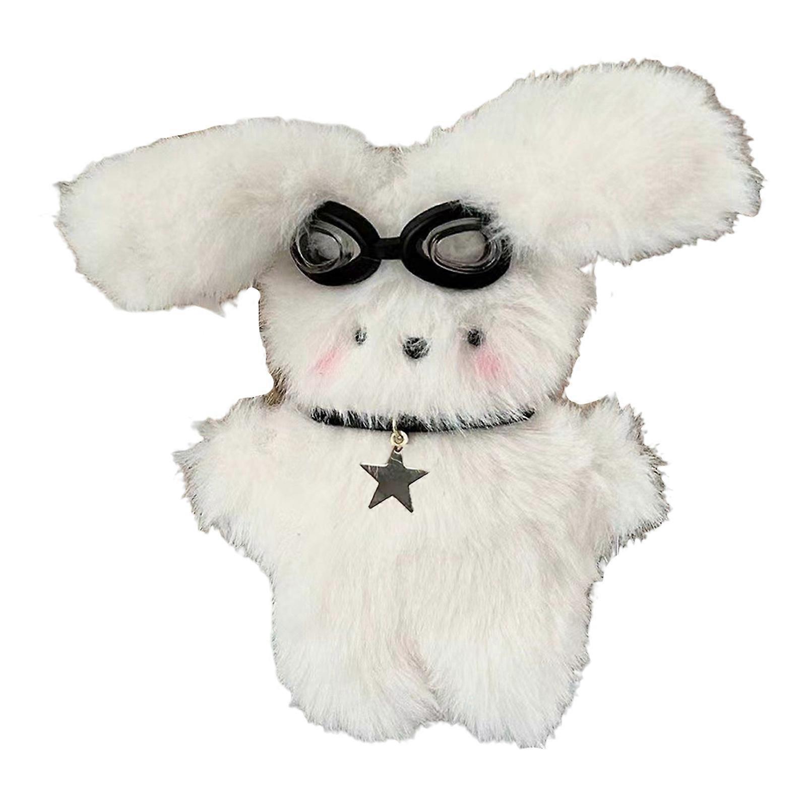 8cm Plush Rabbit Pendant Soft Lovely White Bunny Wear Glasses Plushies Ornament Cool Style Keychain Car Backpack Decor Stuffed Doll Toy Couple Gift Ka