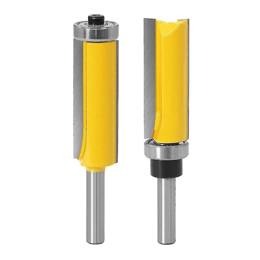 8mm Shank Woodworking Cutter Set, 2 Pieces Straight Flush Cutter With Bearing, Copy Cutter With Upper Bearing + Copy Cutter With Lower Bearing Jiujius