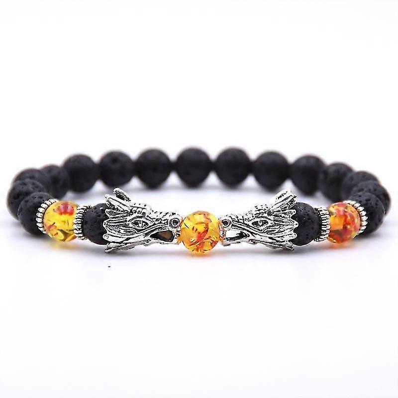8mm Black Rock Lava Stone Men Bracelet Dragon Head