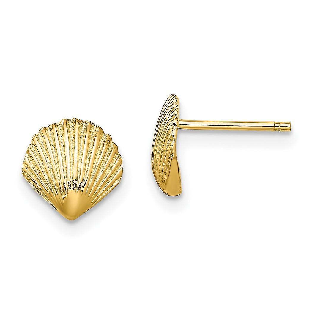 8mm 10k Solid Yellow Gold Scallop Shell Post Earrings 8x8mm Wide Stud Earring for Women - .9 Grams