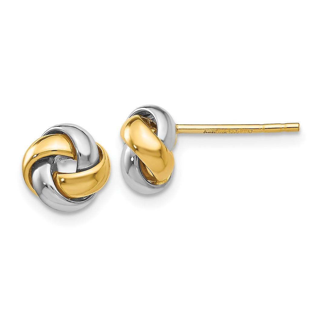 8mm 10k Solid Gold Two tone Knot Post Earrings 8x8mm Wide Stud Earring for Women - 1.0 Grams