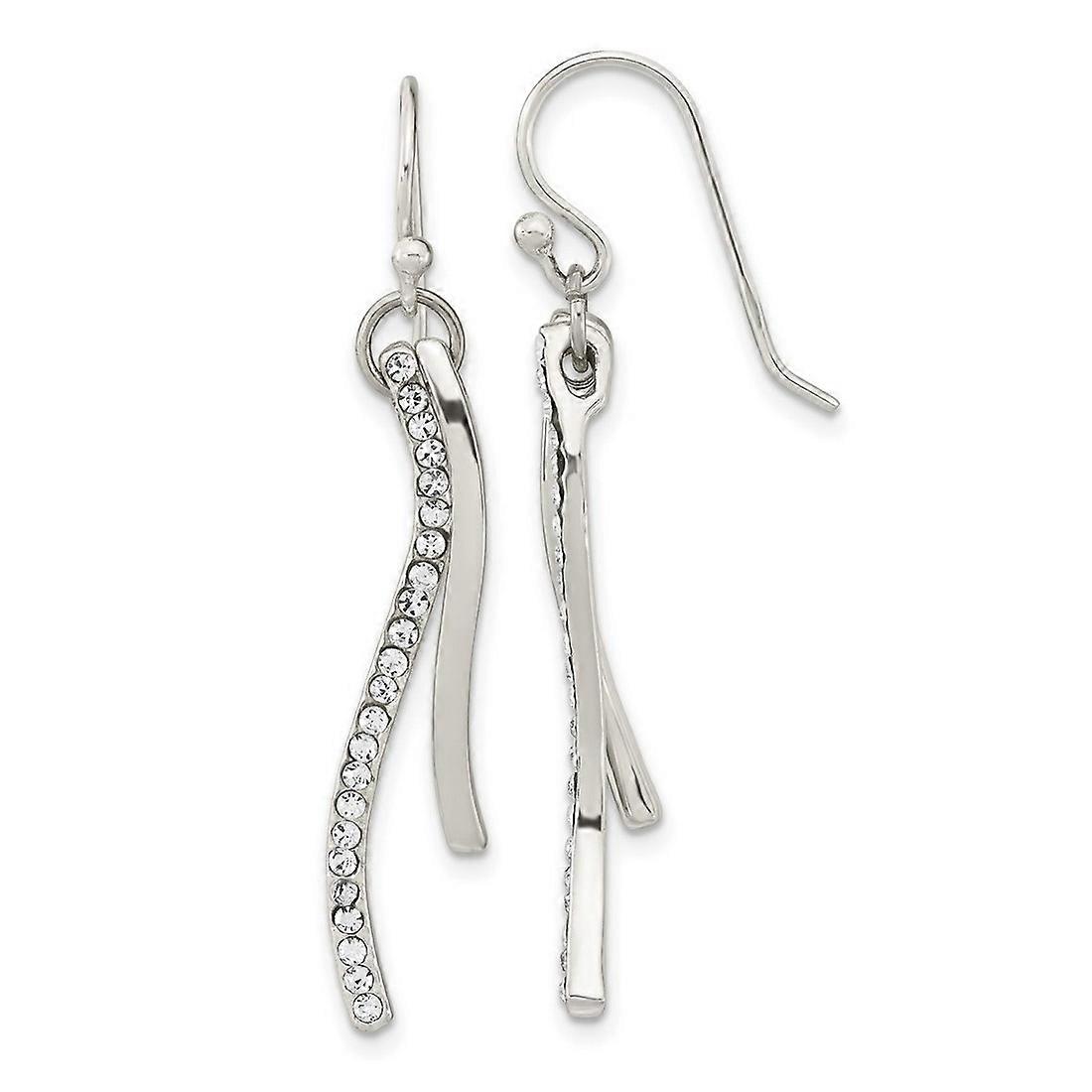 8mm Sterling Silver Polished Cubic Zirconia Wavy Bar Dangle Shephard Hook Earrings - Measures 42.25x8mm Wide - 3.3 Grams In Sterling Silver - - Width of Item: 8 mm - Length of Item: 42.25 mm - Earring Closure: French Wire - Earring Type: Drop & Dangle - Finish: Polished - - [ Potential Enhancement Methods: cubic zirconia ] - Synthetic. Some are covered with a product that makes the stone more durable. - [ Care and Handling: cubic zirconia ] - Clean with warm soapy water and a soft cloth. -