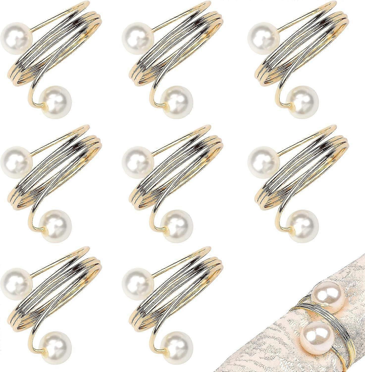 8pcs Wedding Pearls Buckles Alloy Napkin Ring Holder Napkin Buckle Pearl For Xmas, Table Decoration, Holi
