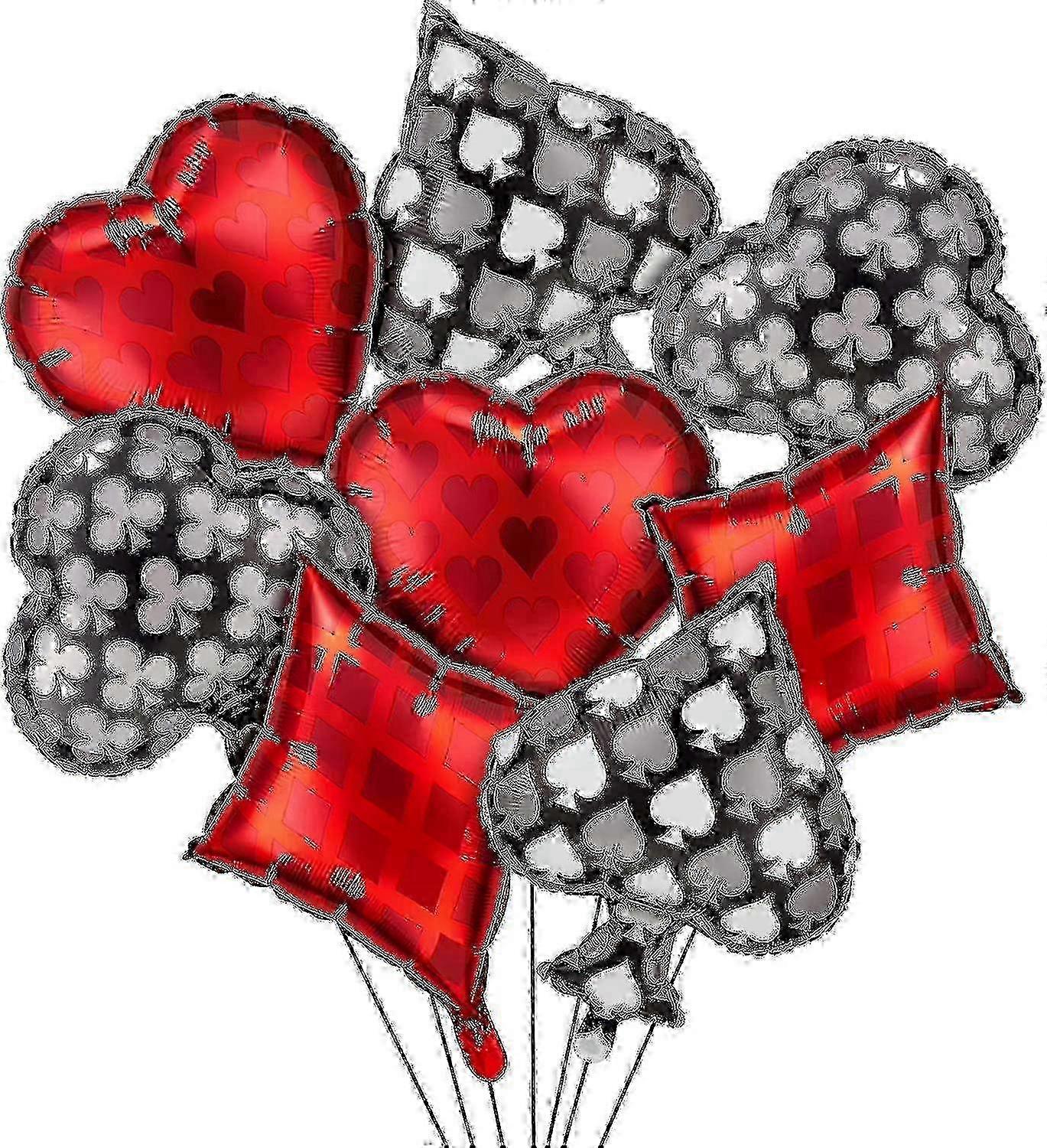 8 Pieces Casino Theme Party Balloons Playing Cards Balloons Casino Foil Balloons Casino Party DecoraPackage includes: playing cards balloons kit includes 2 heart balloons, 2 spades balloons, 2 square balloons and 2 club balloons, sufficient quantity will meet your decoration needs, they are necessities for hosting a casino party, let you feel the atmosphere of a strong casino party as soon as you enter the sceneClassic appearance: these casino party foil balloons are designed with 4 playing card suits, which can provide colorful decorations for your Las Vegas party, casino theme party, good luck party and other birthday celebrations in various playing card styles, the vivid and bright appearance will make your party more interesting, let you and your guests have an unforgettable and impressive experienceQuality material: these playing card patterned balloons are made of aluminum foil, when you need to use them, you need to fill the balloon with air or helium, but in order to prevent rupture, it is not recommended that you fill the balloons too full, at the same time, playing cards balloons can be applied tautologically, you can release the air in the balloons after the party is over, fold the balloons and save them for the next party to continue to use, they are very durableHow to use: after inflation, you only need to pinch the opening of the aluminum foil balloon, the viscose will automatically seal, it is easy to blow and seal, and easy to fill and deflate; They can float in the air for a long time, the beautiful decorations are able to be hung at the door or on the ceiling and walls, but it should be noted that it is recommended to apply them in places with obstacles, because they are easy to float to other places outdoors, and your balloons will leave youVarious applications: the colors of these balloons are mainly red, black, gray and white, they are classic colors for casino parties, highlight the theme of casino parties, and are nice casino party decorations, you are able to use them to decorate Las Vegas parties, casino birthday parties, friend gatherings, and colleague group gatherings, etc.; They are very suitable as photo props as well, you can use these attractive balloons to take commemorative photos with your friends