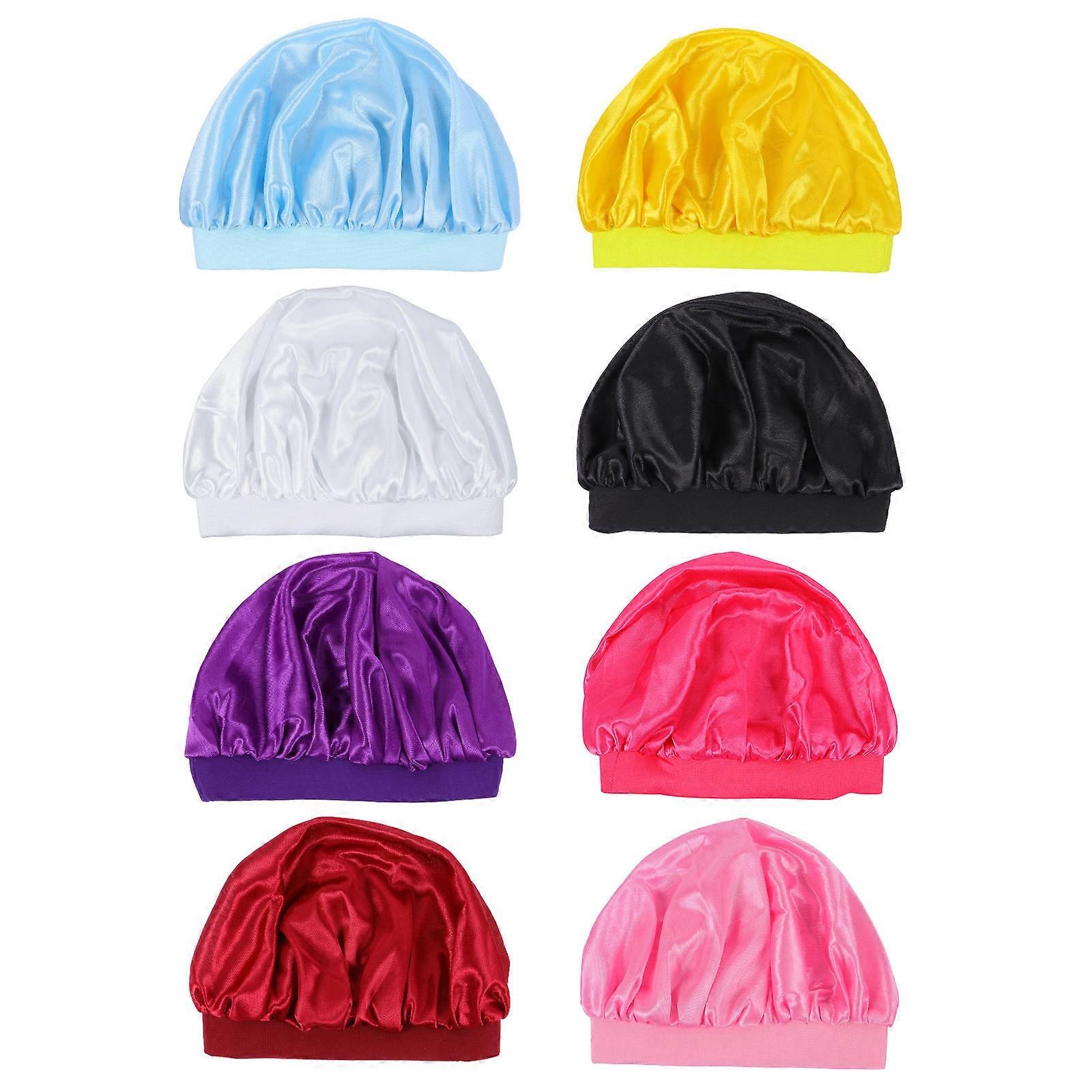 8pcs Kids Sleep Caps Hair Bonnets Nightwear with Wide Rim for Hair Protection