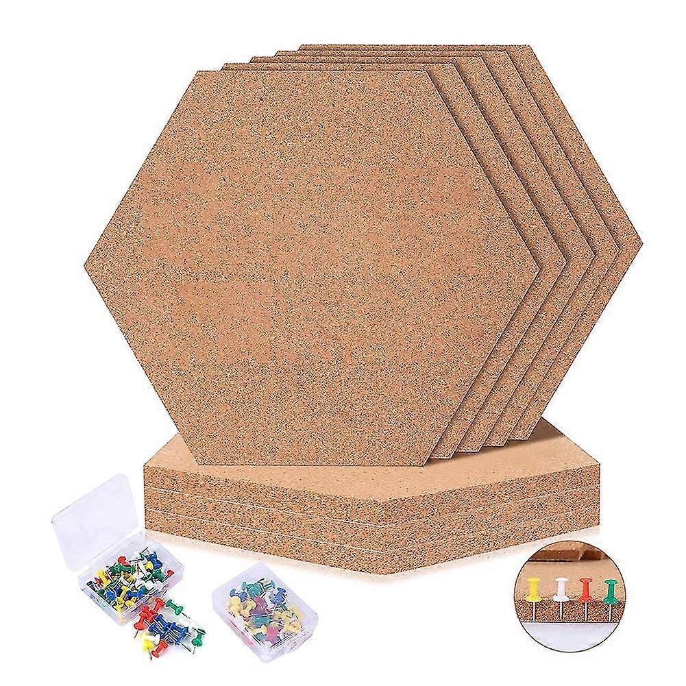 Cork board tiles are made of 100% high natural cork, which is durable and environmentally friendly material. The high-density cork is not easily deformed, tightly to pins, and does not create unsightly pinholes in the cork board when pulled out, making it more durable.The hexagonal cork board has -adhesive tape on the back can simply be peeled off and attached to the wall. pins to hold memos or pictures firmly to the bulletin board.Create your own custom shapes by cutting or trimming cork boards to suit your needs and preferences. You can DIY these cork boards as coasters, custom bulletin boards, backboards, or other art installations.Clean area with a dry cloth and the surface is and dry. off the white backing paper, sticks the adhesive surface to the wall. Press firmly for 10 seconds for better adhesion. Do not stick cork boards to damp or peeling walls.These hexagon cork boards can be widely applied on photo wall, bulletin board, artworks crafts, blackboard, etc. Photos, notes, papers, artwork and other paper things could be .color:As shownMaterial:corksize:About 30 x 26cm, thick 1.2cmPackage Contents:8 x thick cork board80 X pinsOnly the above package content, other are not included.Note: Light reflection and different displays may cause the color of the item in the a little different from the real thing. The measurement allowed error is +/- 1-3cm.