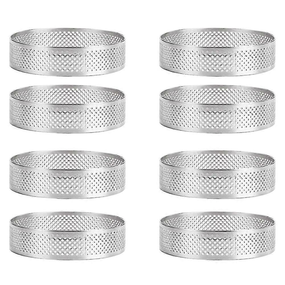 8pcs Stainless Steel Tart Ring, Heat-resistant Perforated Cake Mousse Ring Round Double Rolled Tart CY