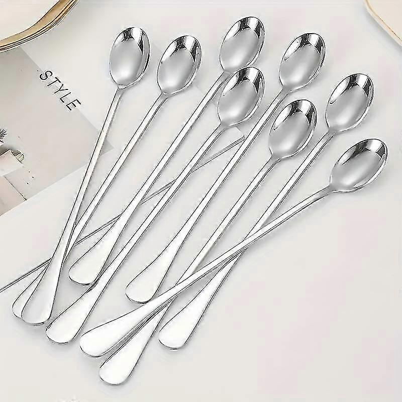 8pcs Stainless Steel Long Handle Ice Tea Spoon, Coffee Spoon, Ice Cream Stirring Spoon, Dishwasher Safe