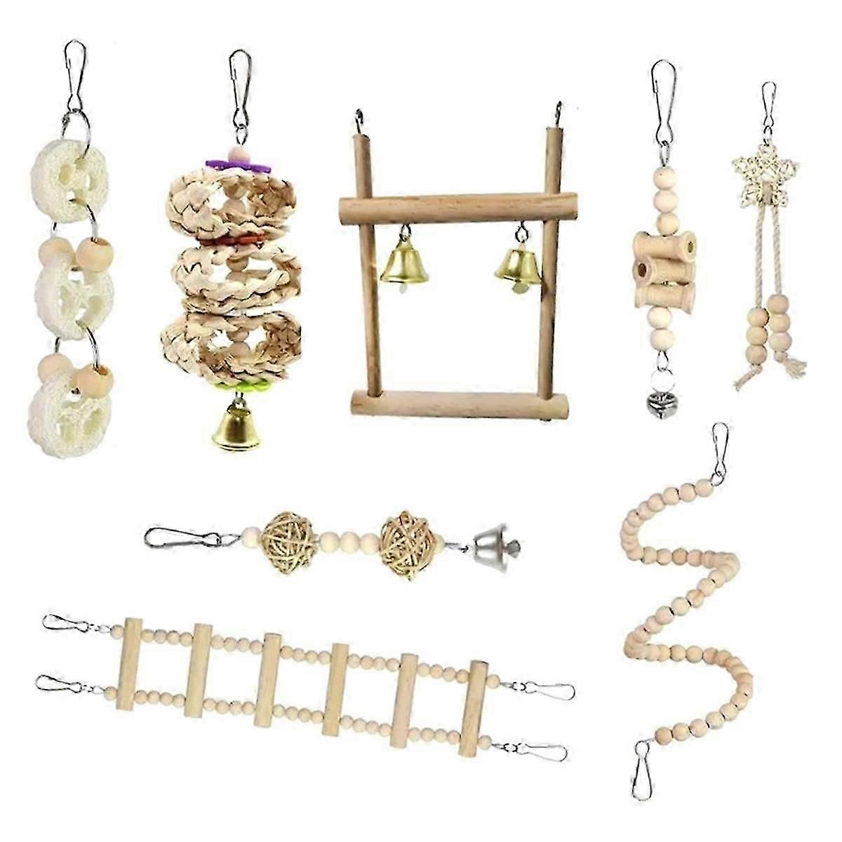 8PCS Set Combination Parrot Bird Toys Wood Articles Bite Pet Bird Toys for Parrot Training