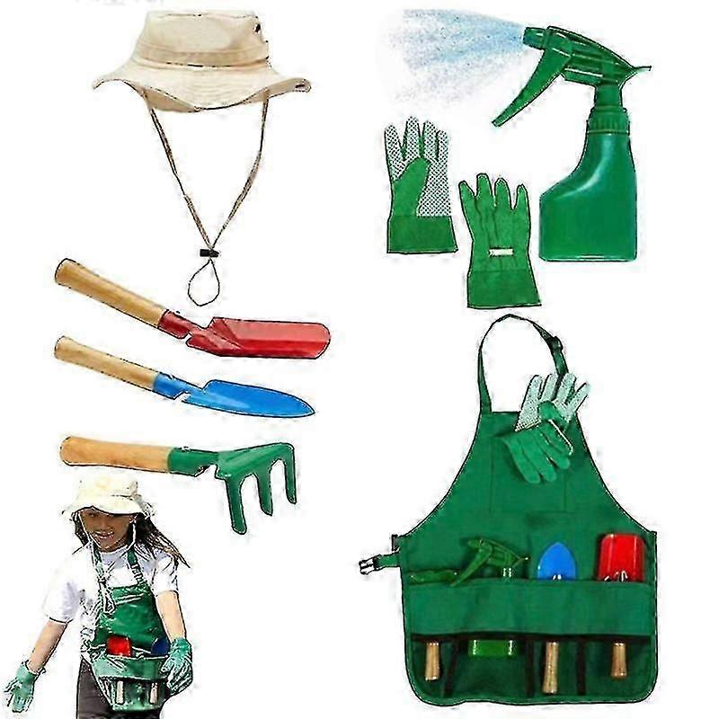 8pcs/set Mini Shovel Rake Garden Tools Portable Small Gardening Kids Pretend Play Toy Accessories With Gloves Apron Hat