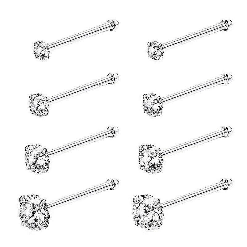 MATERIAL: The crystals are cut with one with the highest level of craftsmanship on each side, which gives a very faceted look and a lot of sparkle. The nose studs are made of 316 stainless steel, allergy-friendly surgical material, perfect choice for sensitive skin. Its durable, strong and light, perfect to keep as a daily piece of jewelry. Guaranteed high quality, each piece is created with the highest level of craftsmanship and inspected. DESIGN: 8 pieces of clear crystal nose sticks in different sizes. With a classic and elegant design, they match perfectly with all clothes for different occasions, such as daily wear, office, party, ceremony, dating and more. Nice and elegant choice for both men and women. DIMENSION: Post thickness = 20G / 0.8 mm, Post length: 7-8 mm; Stone size: 1.5mm 2mm 2.5mm 3mm. Stylish and elegant choice for both men and women. Small and delicate shiny nose ring bud, with highly polished surface, light and comfortable to wear. You will find the nose studs that match most clothes such as casual wear, workout clothes, shirts, dress, pants and so on. IDEAL GIFT CHOICE: Comes with a jewelry box. Perfect gift for all gift giving occasions, nice Christmas gifts, Thanksgiving gifts, graduation gifts, birthday gifts, congratulatory gifts, Christmas gifts, Mother's Day gifts, anniversary gifts or business gifts for girls, men, teens, women, mom, wife, girlfriend, business partners.