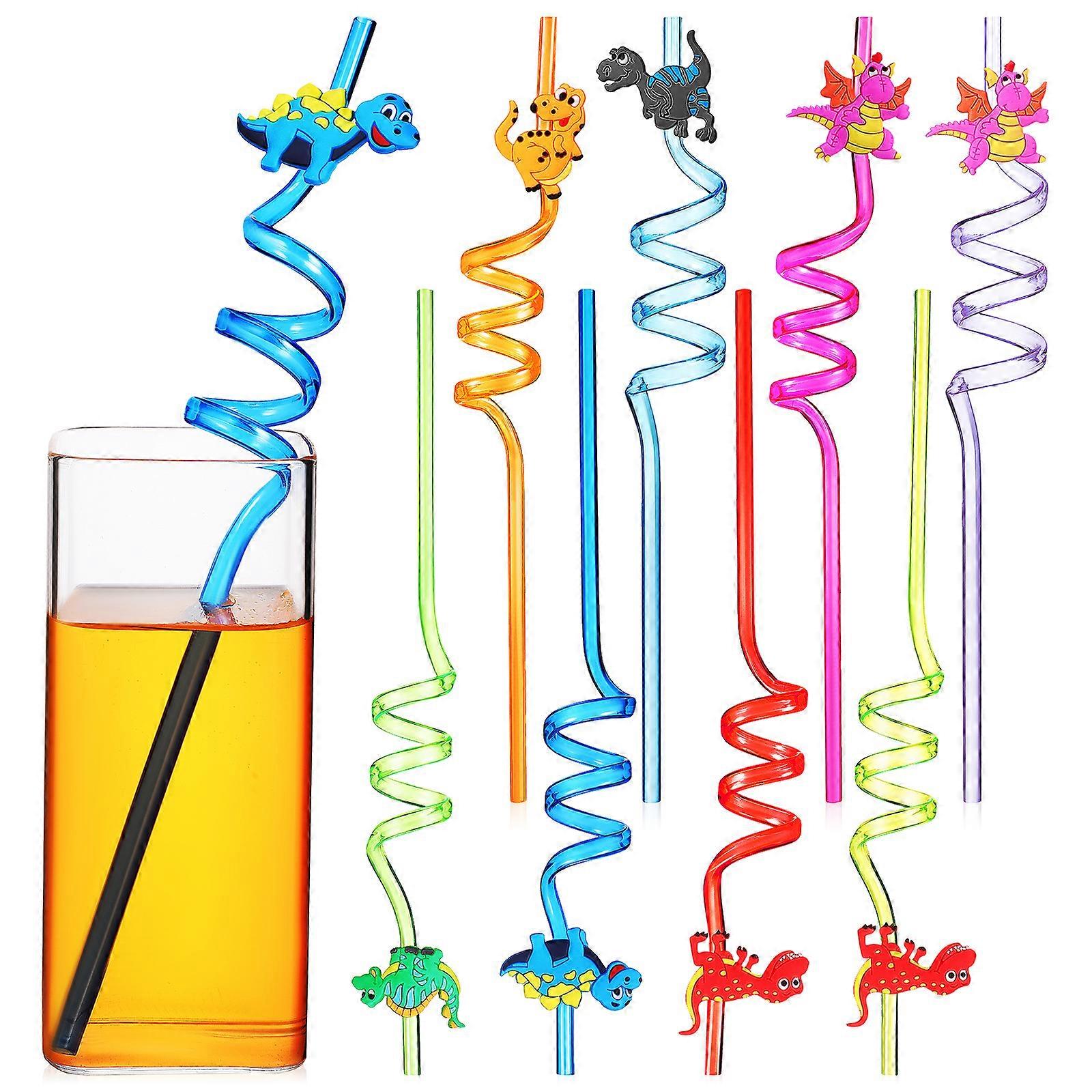 8pcs Party Swirly Straws Disposable Drinking Straws Dinosaur Drinks Straws Cute Straws
